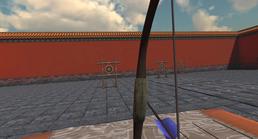 射,是指古代的軍事射箭技術(shù)。展廳將直觀展示弓與箭的形態(tài)和古人對于君子射藝的要求,并通過問答題形式開啟古代校場靶場的場景,使用者利用VR設(shè)備親子射箭,通過VR設(shè)備真實(shí)的力學(xué)反饋得到真實(shí)的體驗(yàn)。