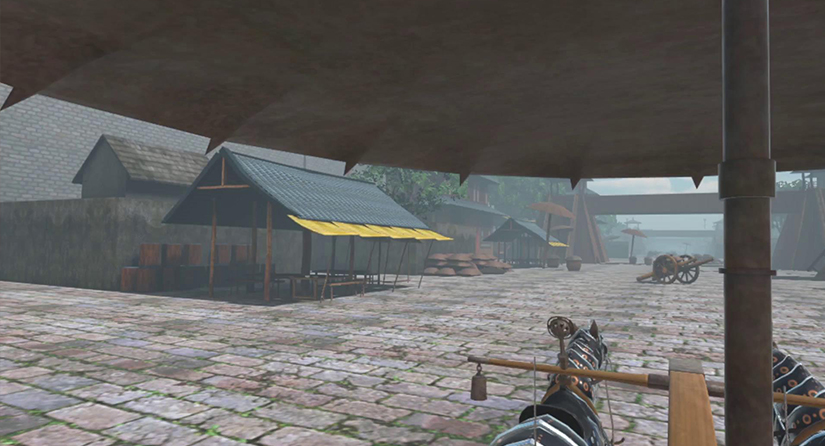 御,是指古代駕馭馬車戰(zhàn)車的技術(shù)。展廳直觀展示古代車馬的形式和與近現(xiàn)代馬車不同,以文字向使用者傳播御藝對于古代君子的重要性。并通過問答形式開啟古代街市的場景,使用者利用VR設(shè)備駕馭一輛車馬行駛在街市上,體驗(yàn)鞭花揚(yáng)起馬蹄翻飛的真實(shí)感覺。