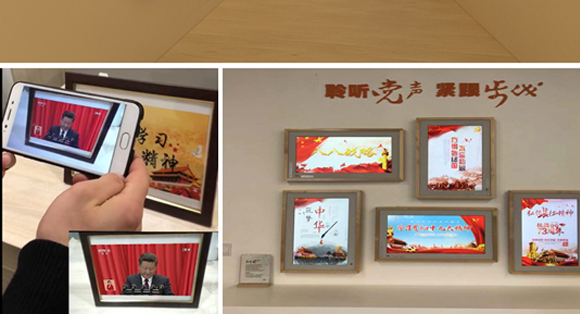 將紅色電影、黨史故事等以AR電子相框方式展示,通過(guò)平板或者安卓手機(jī)掃描圖片,讓靜態(tài)內(nèi)容動(dòng)起來(lái),讓平面內(nèi)容立起來(lái),增強(qiáng)黨員學(xué)習(xí)教育生動(dòng)性和趣味性。