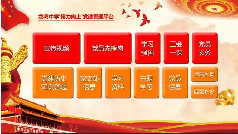 黨員先鋒崗、學習強國、三會一課、黨員義務、黨支部信息、主題學習、黨群聯(lián)系等相關內容