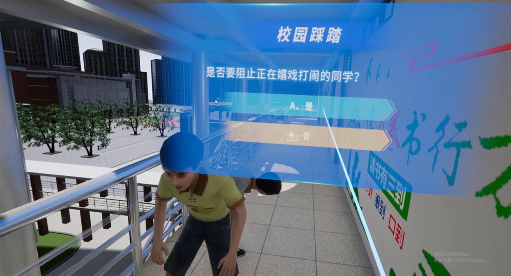 場景是學(xué)生在參加集體活動下樓梯時(shí)發(fā)生的踩踏事故,通過對引起踩踏事故的各種原因進(jìn)行分析,體驗(yàn)不同的形式,從而讓學(xué)生能夠更加重視,避免這類事故的發(fā)生。