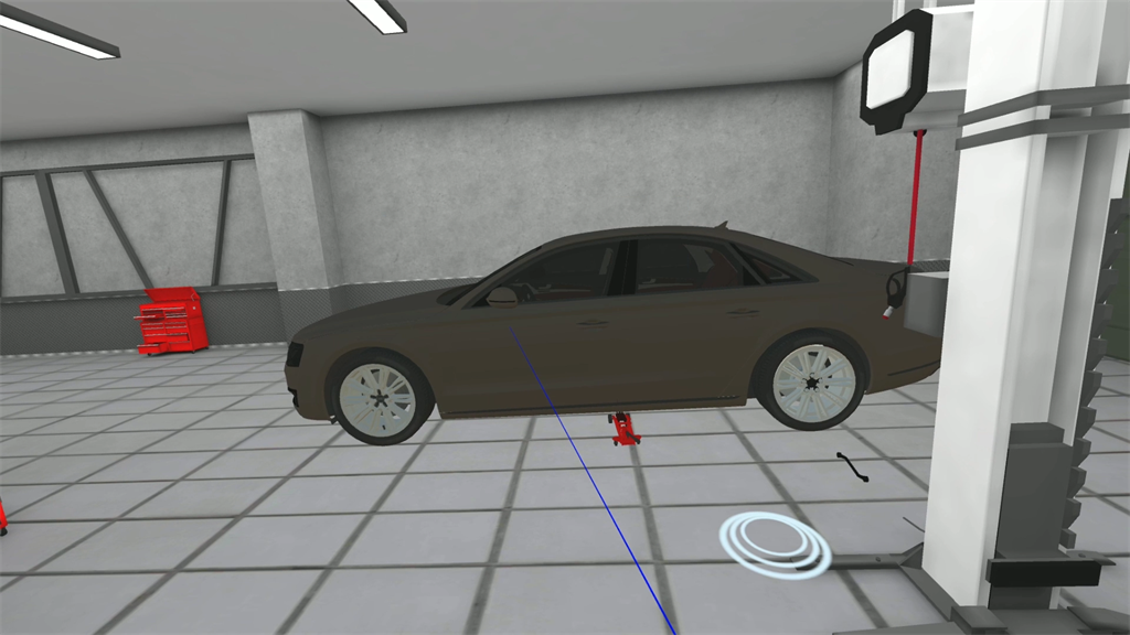 VR汽車輪毅改裝場景,還原汽車車間和換輪毅操作流程,服刑人員帶上VR眼睛,沉浸式學(xué)習(xí)換輪毅拆裝,換輪毅工具的識別和工具操作,讓服刑人員可以在虛擬場景中反復(fù)實踐,學(xué)習(xí)汽車輪胎修補技能。