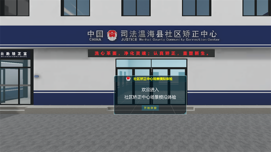 場景精確復(fù)現(xiàn)社區(qū)矯正中心的“三區(qū)十八室”,體驗者仿佛置身其中,可自由漫游和互動。系統(tǒng)還配備語音介紹每個科室,助力體驗者更深入地認(rèn)識和了解社區(qū)矯正中心。