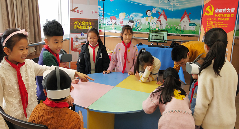 2019年12月30日,甌海區(qū)郭溪六小學(xué)校少年宮異常熱鬧。黨建、消防、交通安全、禁毒、垃圾分類等VR實訓(xùn)教學(xué)體驗五大主題內(nèi)容在音樂室舉行。采用分班觀看體驗,將培養(yǎng)愛國主義思想和提高小學(xué)生科技素質(zhì)落到實處,同時也有助于提升校園安全教育深度與垃圾分類認(rèn)識。