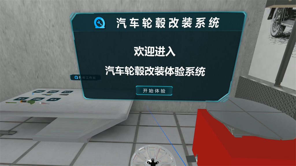 VR汽車輪毅改裝場景,還原汽車車間和換輪毅操作流程,服刑人員帶上VR眼睛,沉浸式學(xué)習(xí)換輪毅拆裝,換輪毅工具的識別和工具操作,讓服刑人員可以在虛擬場景中反復(fù)實(shí)踐,學(xué)習(xí)汽車輪胎修補(bǔ)技能。