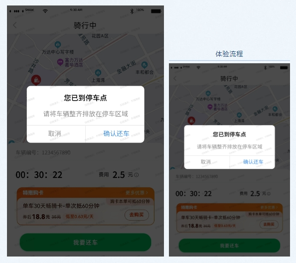 騎行結(jié)束后,點(diǎn)擊APP上的“還車”按鈕,車鎖自動(dòng)關(guān)閉,系統(tǒng)提示“還車成功”,體驗(yàn)圓滿結(jié)束。