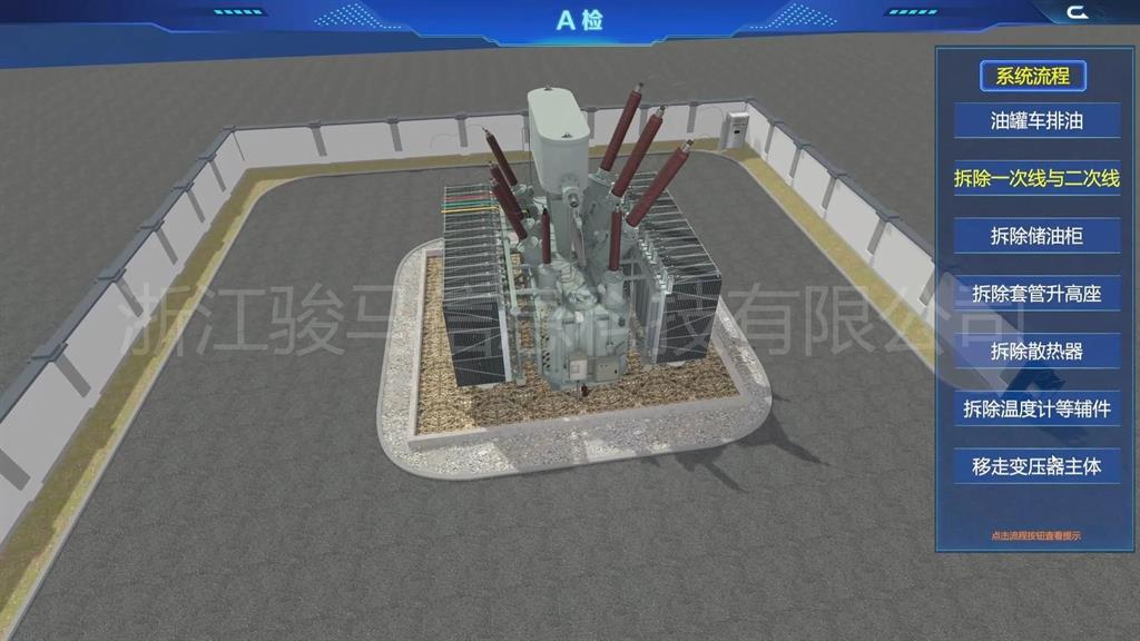在軟件中,用戶可以體驗(yàn)到每個(gè)設(shè)備的維護(hù)工作,包括變壓器、分接開關(guān)、儲(chǔ)油柜、散熱器、套管、瓦斯繼電器、溫度計(jì)和在線濾油機(jī)等關(guān)鍵部件。通過(guò)模擬體驗(yàn),掌握變壓器維護(hù)操作。