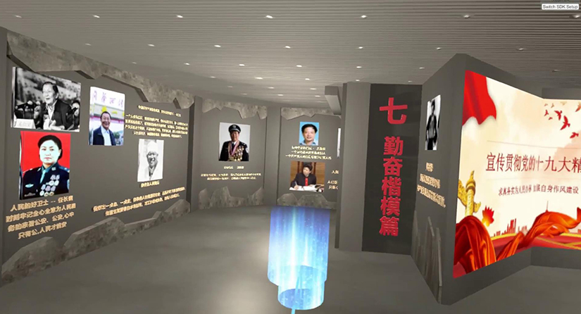 本次項(xiàng)目配備了一臺(tái)VR互動(dòng)設(shè)備、7臺(tái)VR一體機(jī)設(shè)備,內(nèi)容涵蓋了VR長征爬雪山互動(dòng)、VR過草地互動(dòng)、新中國成立70周年成就館、VR廉政館、VR黨史館等一系列經(jīng)典黨建體驗(yàn)內(nèi)容。